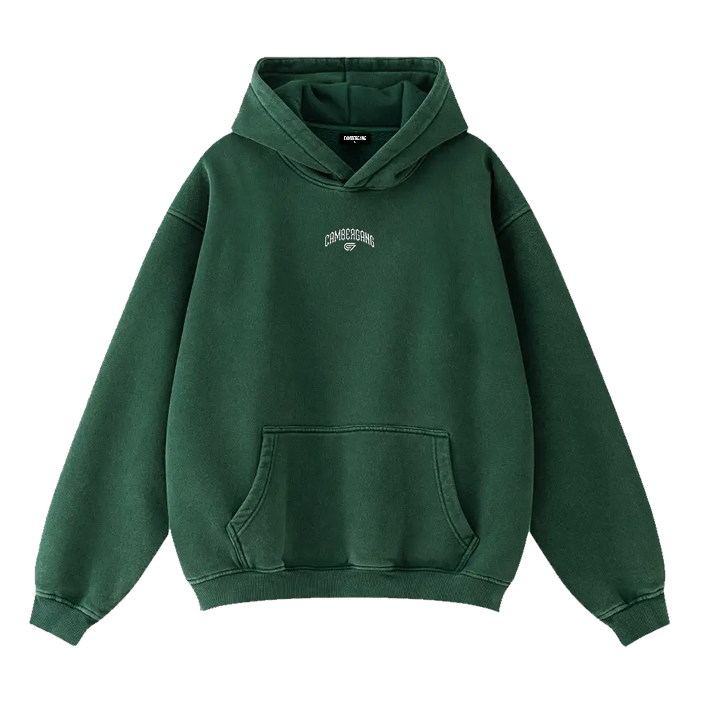 "CAMBERGANG" GREEN 3D Metallic Stone Washed / Distressed Hoodie
