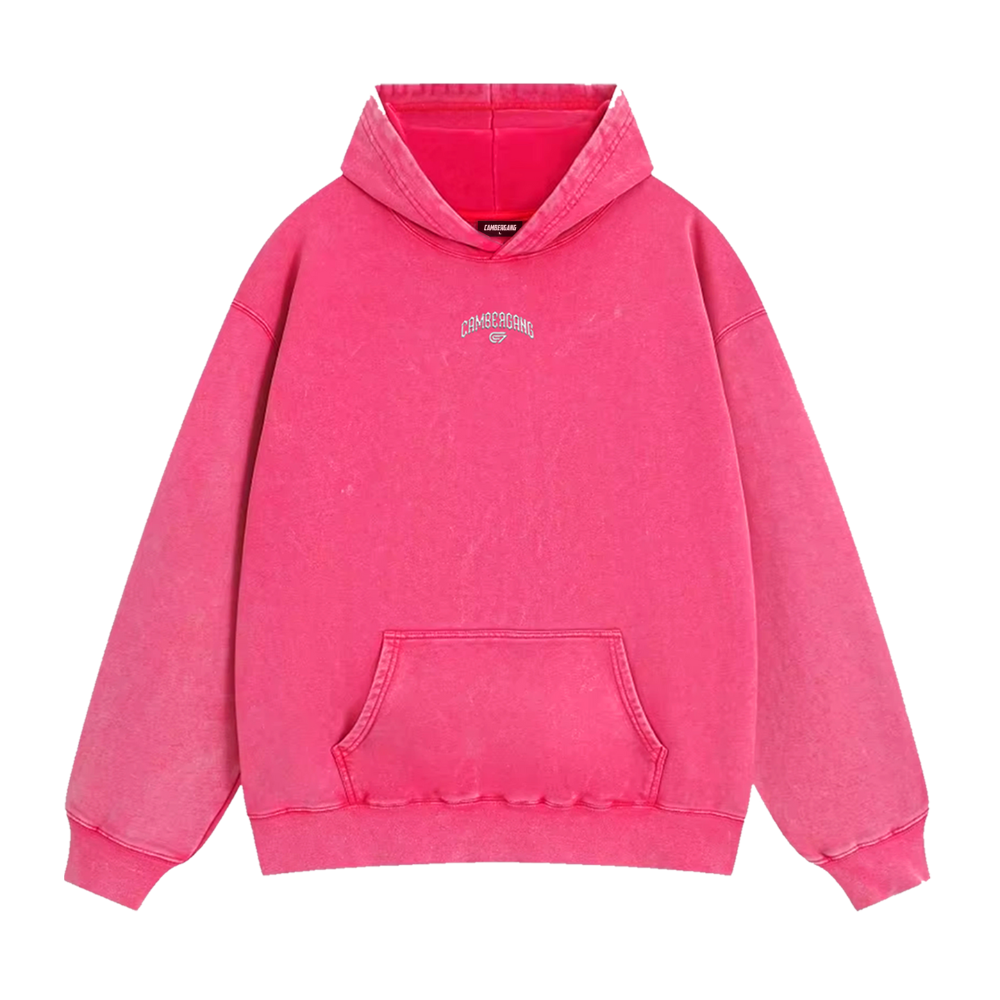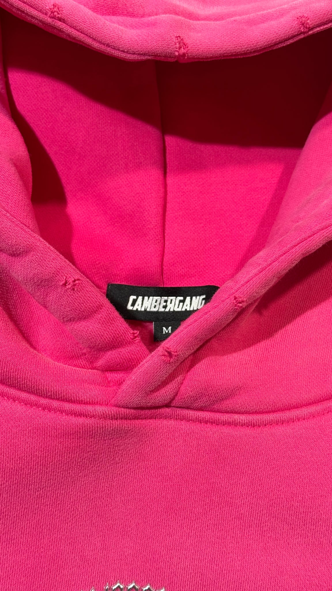 "CAMBERGANG" HOT PINK 3D Metallic Stone Washed / Distressed Hoodie
