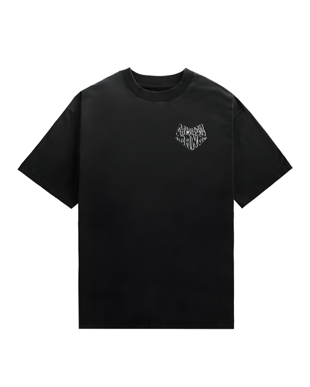 "OUTLINE CHROME HEART" BLACK PREMIUM HEAVYWEIGHT TEE